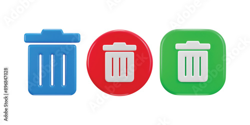 Recycle bin trash can icon set 3d rendering vector illustration