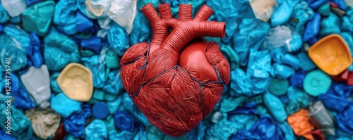 Recycle sustainability renewal concept. Conceptual art of a human heart made from recyclable materials, symbolizing renewal of humanity, recycle renewal, ecoconscious emotion