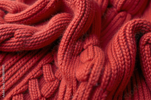 Recycled Wool Textile Macro – Vibrant Red Knitted Fabric for Sustainable Fashion, Eco Design, and Textile Innovation Presentations