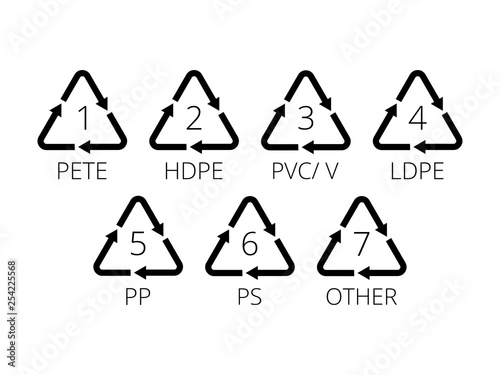 Recycling symbols for plastic. Flat icons, signs for design packaging.