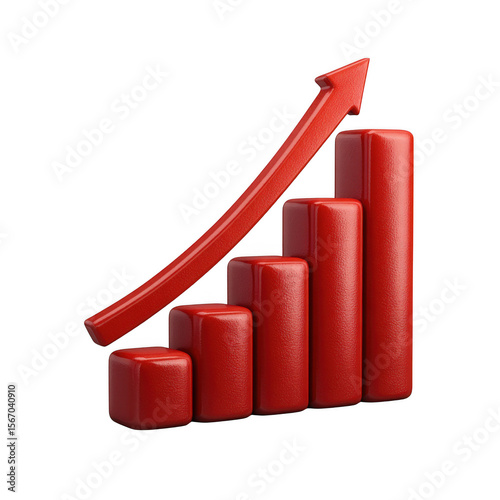 Red 3d bar chart with upward trending arrow isolated on transparent background