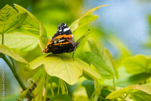 Red Admiral Butterfly on Leaf in Springtime
