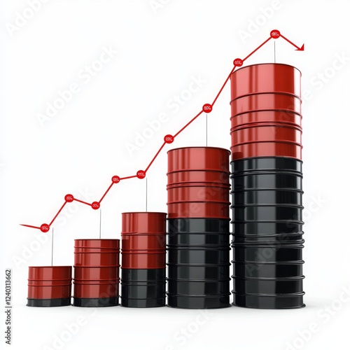 Red and Black Oil Barrels Representing Rising Industrial Growth and Economic Trends with Graph Overlay