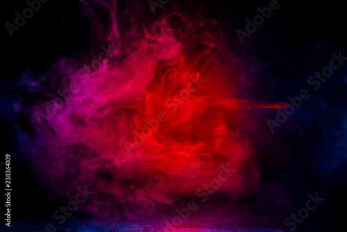 red and blue smoke patterns at dark background