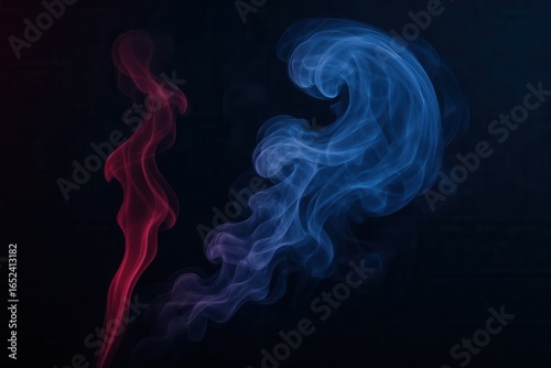 Red and blue swirl together in a mesmerizing display against a dark backdrop