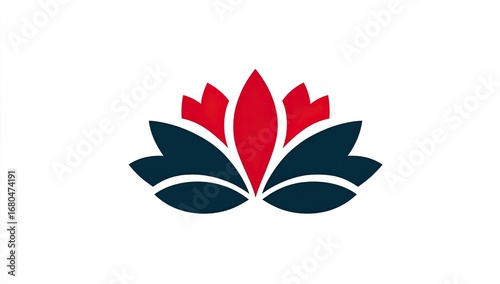 Red and dark blue stylized lotus flower logo on white background