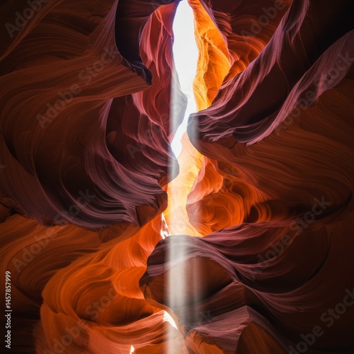 Red And Orange Slot Canyon With A Light Beam