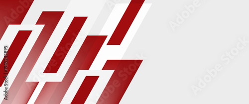 Red and white abstract banner background. Modern abstract white and red background with 3D Overlap layers effect.