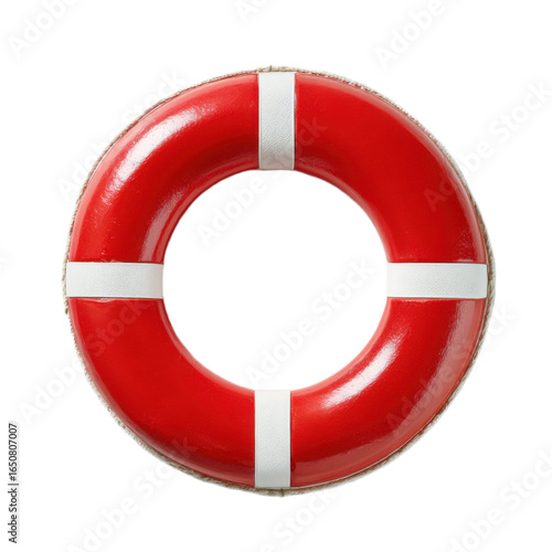 Red and white life preserver with a white stripe