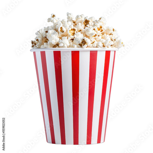 Red and White Striped Popcorn Bucket Filled with Popcorn