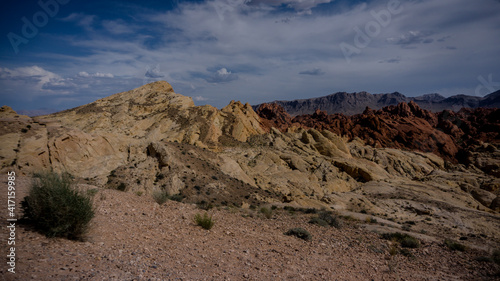 Red and yellow limestone formations in the valley of fire state park, USA