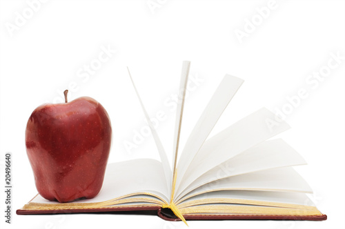 Red apple on the open book