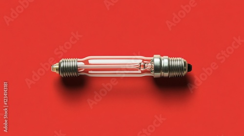 Red background, linear glass bulb, electricity, innovation, technology, design