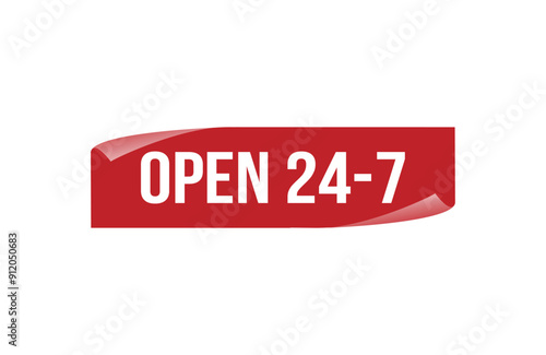 Red banner open 24-7 isolated on white background.