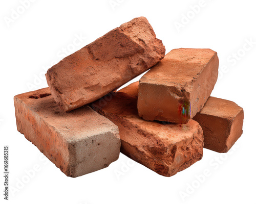 Red brick construction material rough texture building supply stacked isolated rustic masonry clay durable essential for architecture and renovation projects