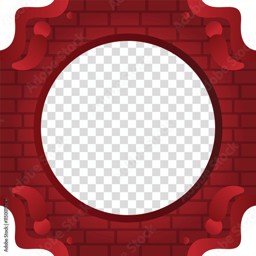 Red Brick Twibbon Frame with Circular Transparent Center Background