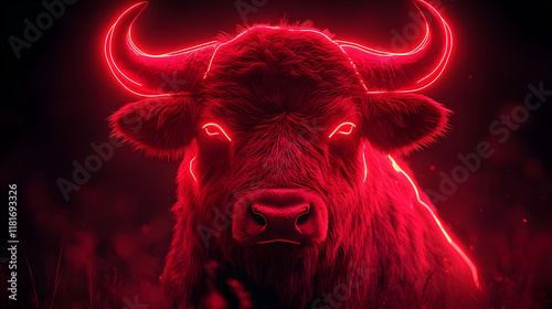 Red Bull Stands Majestically in Dark Field: Neon Glow