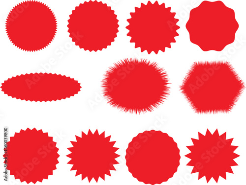 Red Burst Badge and Label Shapes Set – Vector Design Elements Collection
