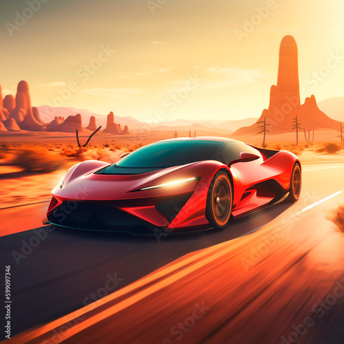 Red car on the desert road