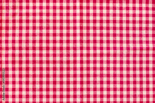 Red classic checkered tablecloth pattern texture, background with copy space.