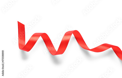Red curled silk ribbon on white background