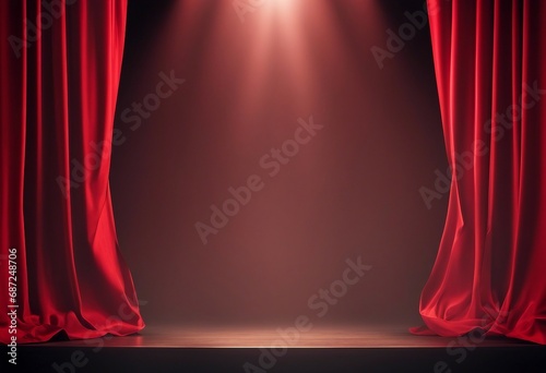 Red Curtains on Magic Theater Stage Spotlight Show