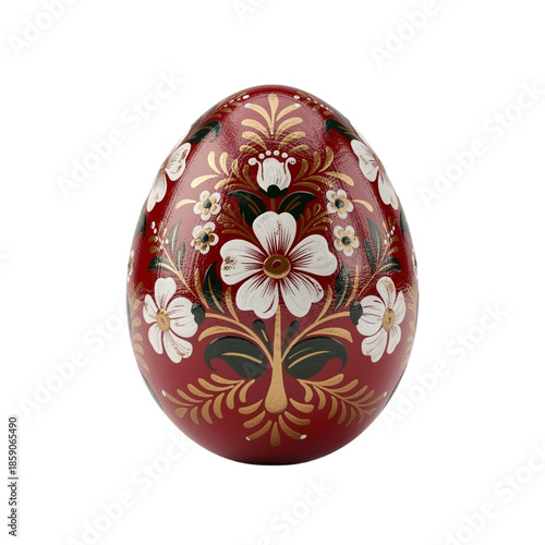 Red easter egg, Traditional folk ethnic red decorative egg with floral pattern.