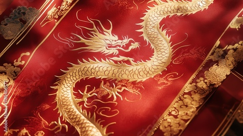 red envelope featuring gold dragon motifs and traditional Chinese calligraphy, symbolizing prosperity for Chinese New Year 2025.