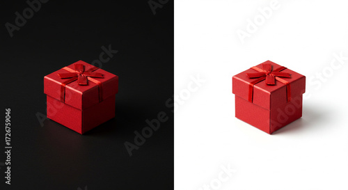 Red gift box with ribbon on black and white backgrounds