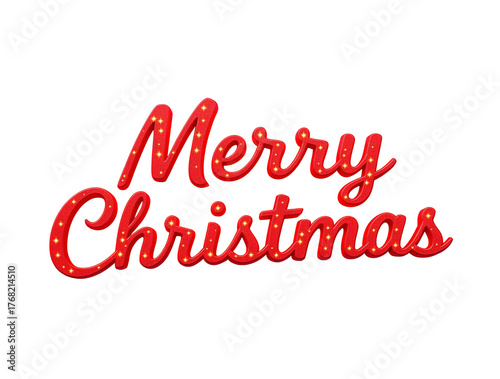 Red glitter script merry christmas text isolated on a transparent background holiday