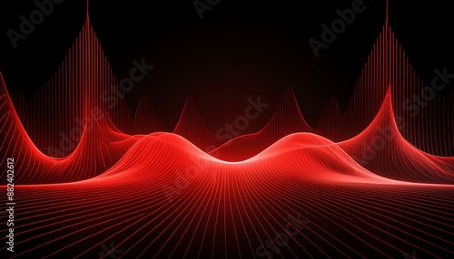 Red gradient color light wave spectrum abstract on plain black background