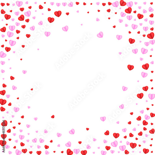 Red Heart Background White Vector. Fall Illustration Confetti. Tender Congratulation Frame. Pink Confetti Element Texture. Fond Wallpaper Pattern.