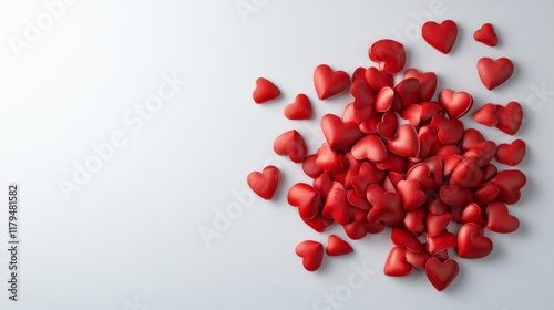 Red Heart Confetti on White Surface. Generative AI
