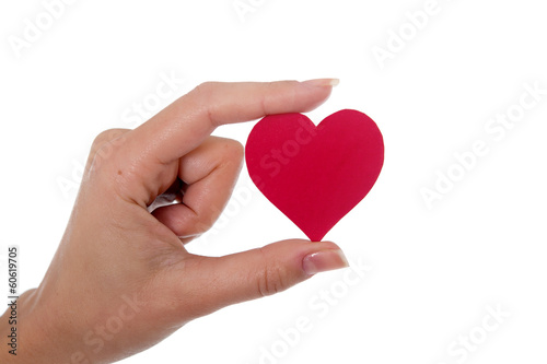 red heart in a womans hand on white background
