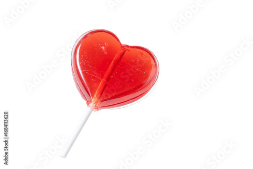 Red Heart Lollipop Isolated on White Transparent Background