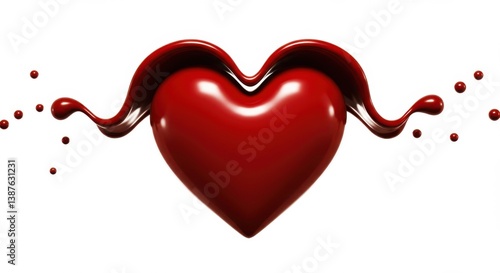Red Heart with Flowing Liquid Splash on White Background