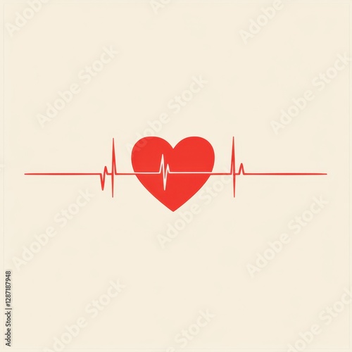 Red heart with heartbeat on white background