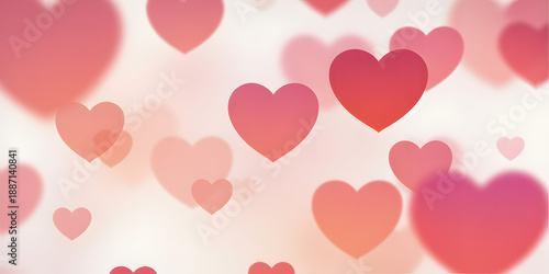 Red Hearts Floating on White Background