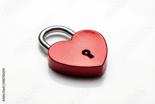 Red heart-shaped padlock with a keyhole against a white background