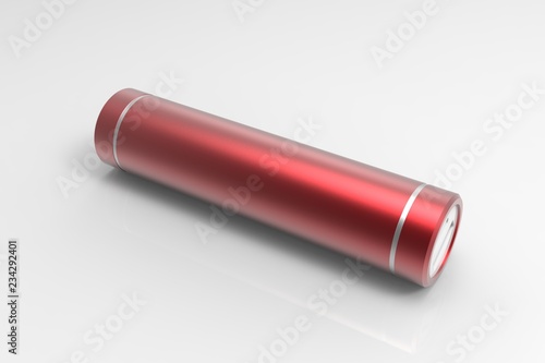 Red isolated cylinder power bank on white background. Mock up, 3D rendering