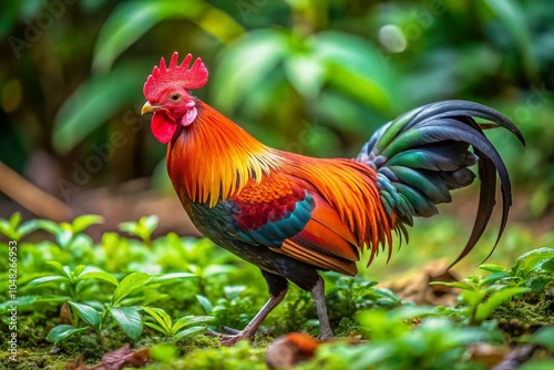 Red Junglefowl on Ground: Vibrant Food Photography of Gallus Gallus in Natural Habitat