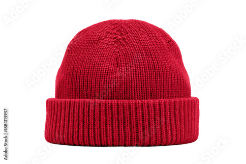 Red Knit Beanie Isolated on White Transparent Background