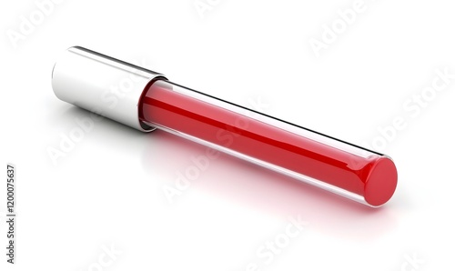 Red lip gloss in transparent tube with silver cap, isolated on white.