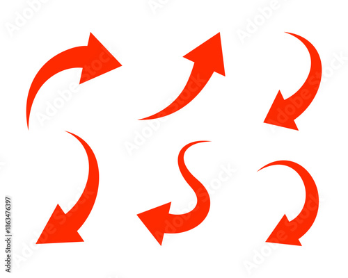 Red minimal curved arrows. Vector direction arrows for navigation and visual flow