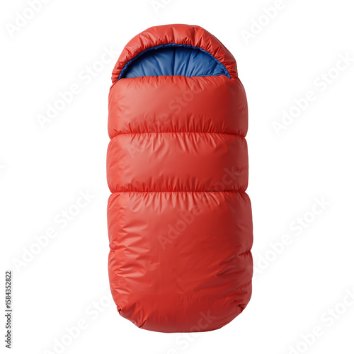 Red Mummy Sleeping Bag Open Display with Quilted Design and Blue Lining