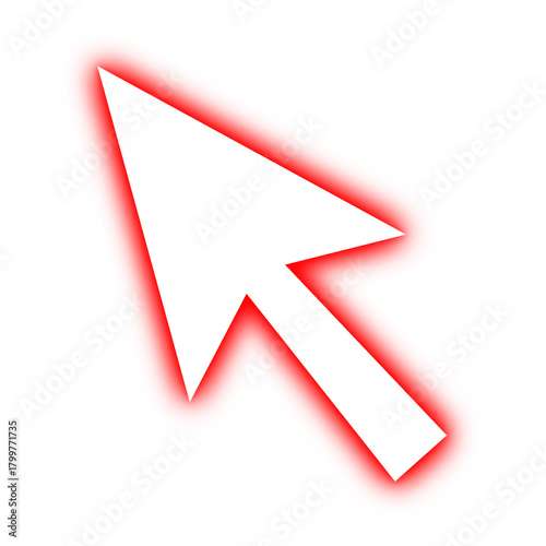 Red neon mouse cursor, Isolated with glow
