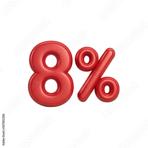 Red number 8 and percent symbol isolated on transparent background
