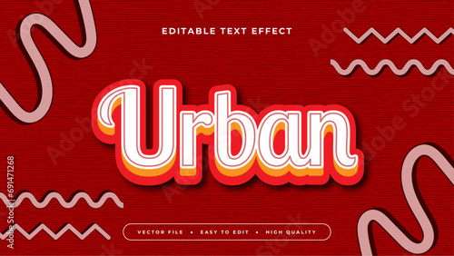 Red orange and white urban 3d editable text effect - font style. Retro text effect