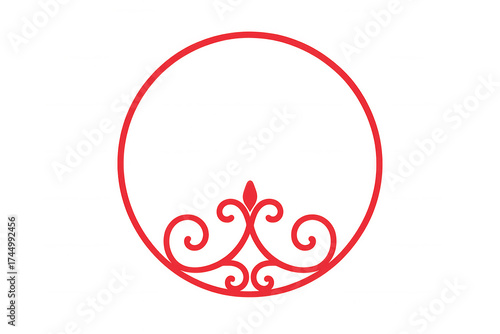 Red ornamental round frame with filigree flourishes, a decorative circular border for design templates