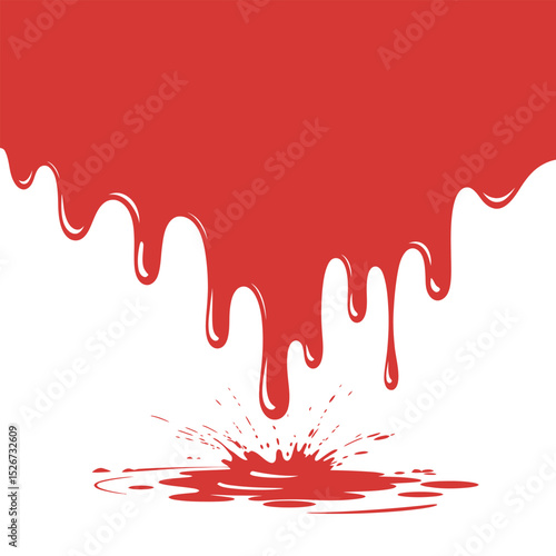 Red Paint Dripping and Splattering on White Background for Halloween or Horror Themed Design Projects and Creative Visuals and Graphic Elements